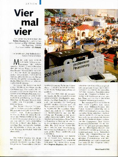In dieser Ausgabe ist der Bericht über die Techno-Classica von 1992 enthalten. Und auf dieser Techno-Classica erzielte unser Club den 3.Platz in der Clubwertung. Das erste und bisher einzige Mal, das ein Club mit Youngtimer´n so weit vorne lag. Dieser Bericht machte uns über die Grenzen Deutschlands bekannt, aber leider auch bei manchen Oldtimer-Clubs unbeliebt. | ||||||||||||||||||||||||||||||||||||||||||||||||||||||||||||||||||||||||||||||||||||||||||